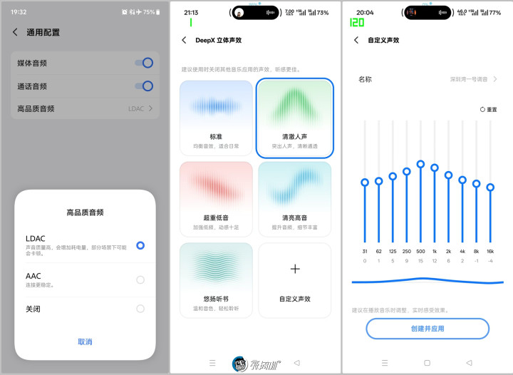 听大编制和动次打次都OK,偏向听流行乐/人声的话,建议换“清澈人声”或手动去拉一下音效曲线。