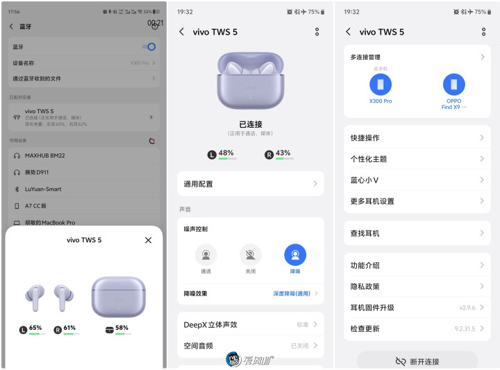 实际体验,vivo TWS 5的最高档降噪,比那些官标最大降噪深度50、55dB强一个身位。就像戴上3M耳塞,而且高频降噪还更好一点(题外说一句,这么多版本的3M耳塞,“早知道还是原道”,还是最古老的橙色版最甜点,降噪好,还便宜大份)。