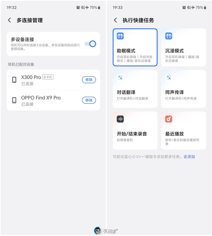 除了用耳健康提醒、三设备连接,还能触发像同声传译之类的功能(中英日韩法泰等语言)↑。